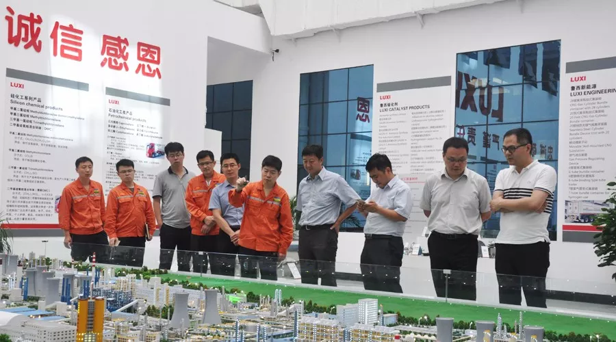 期间,刘总一行相继参观了园区生产装置、重型装备厂房、聚碳酸酯装置、产品展厅和运行指挥中心。听取了集团整体运营情况,以及产品结构调整、转型升级,员工技能培训、智慧化工园区平台建设等情况的介绍,对鲁西集团“一体化、集约化、园区化、智能化”发展模式给予了高度评价。