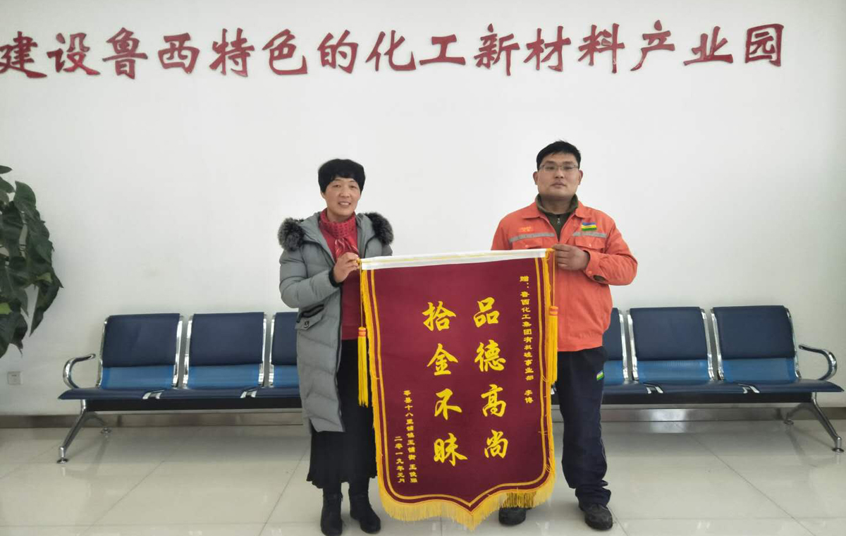 近日一面印有“品德高尚、拾金不昧”的锦旗送到了鲁西集团接待处,经接待处同志询问得知,是来对鲁西集团下属单位有机硅事业部李博同志拾金不昧的行为表示感谢。