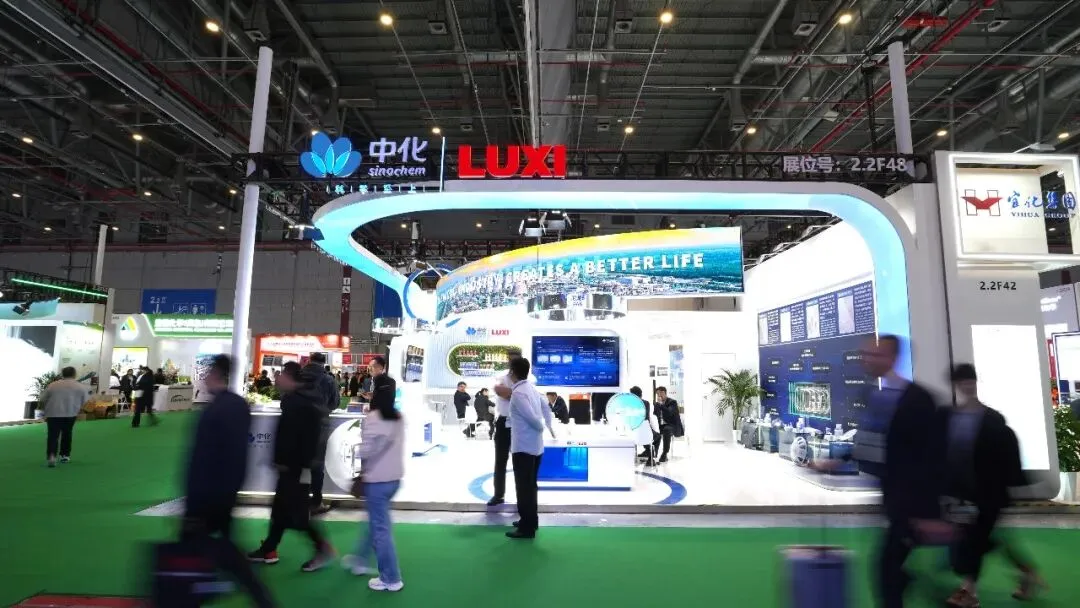 本次展会,鲁西化工以蓝白为主色调,打造了兼具科技感与未来感的现代化展台,通过实物展示、多媒体演示、场景化应用呈现等方式,生动诠释了企业"化工创造美好生活"的理念。